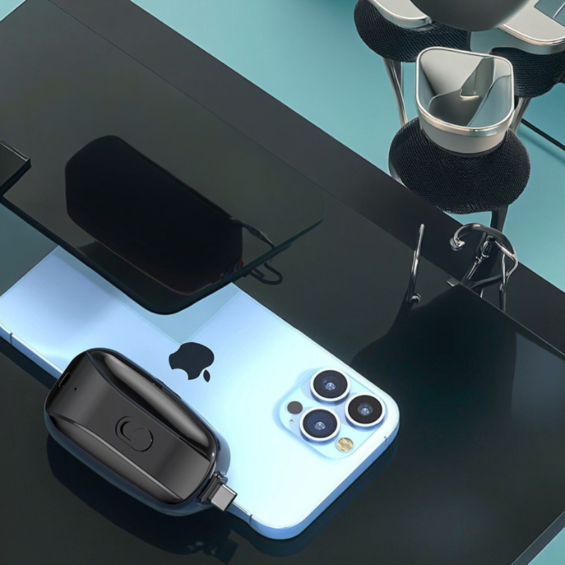 يتصل مباشرة بمنفذ الهاتف (Lightning أو Type‑C حسب اختيارك) ويبدأ الشحن فوراً.