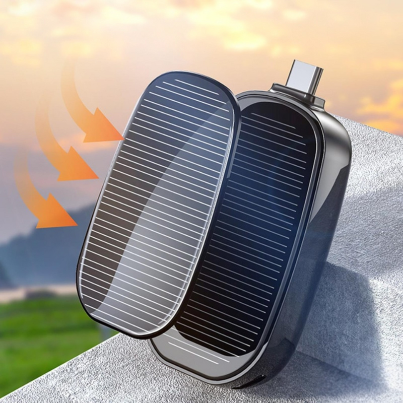 • طرق الشحن: طاقة شمسية + شحن Type‑C سلكي.